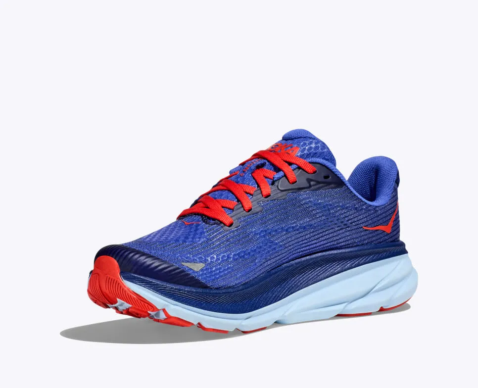 Designed for future milers and marathoners alike, the kids’ Clifton 9 delivers all the same cushy comfort and performance—now in a slightly smaller package. Designed to fit the unique shape of kids’ feet, we’ve cued up an ultralight 30% sugarcane midsole, 31% recycled yarn upper, plus a high-abrasion rubber outsole to keep up with the most active of kiddos. Why you’ll love it – Same iconic HOKA comfort and performance, sized down for up-and-coming athletes.